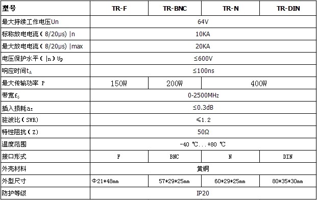 TR系列產(chǎn)品開關(guān)型天饋電涌保護(hù)器用以防止因饋線感應(yīng)雷擊過電壓而對(duì)天線及收發(fā)設(shè)備造成的損害,適用于無線通信,移動(dòng)基站,微波通信,廣播電視等同軸天饋系統(tǒng)信號(hào)防雷浪涌保護(hù),安裝于防雷分區(qū)LPZ0A-1及后續(xù)分區(qū)